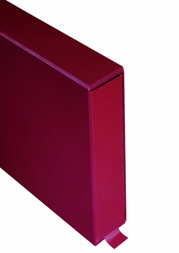 - Matching slipcases covered in maroon bookcloth are available for standard size albums.