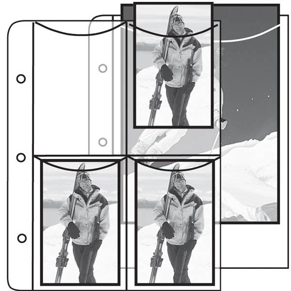 Photo Album pages with 3 holes for 3 ring binder albums, crystal clear 100% polyester.