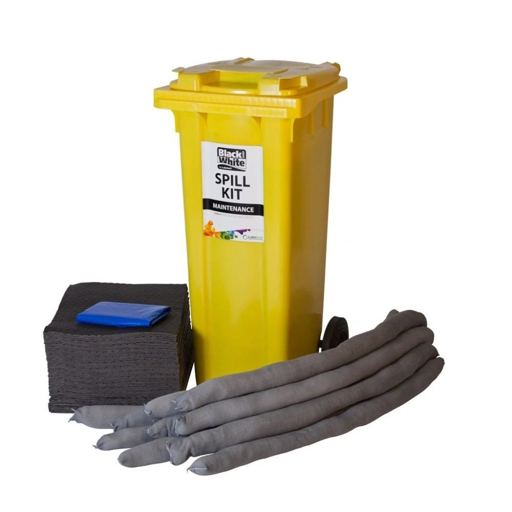 Performance quality high capacity spillage kit. Easy to follow instructions included in the kit. Supplied in a top quality weatherproof 2-wheeled bin with a hinged lid. Complete spill kit designed for spills up to 120litres Products packed in deployment order Designed to absorb and retain water and all industrial liquids including; oil, coolant, and solvent based spills. The top quality 2-wheeled bin is easy to transport and deploy. Clearly labelled to eliminate confusion. Kit includes waste disposal bags and cable ties for an efficient disposal of used product.